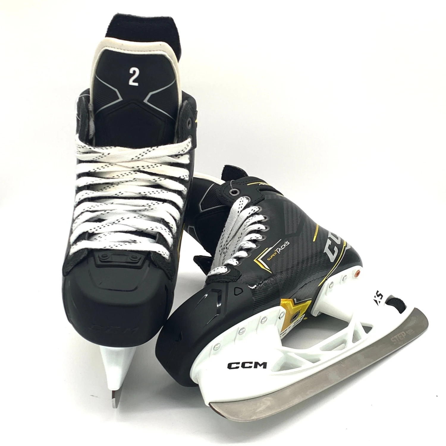 New CCM super tacks AS3 skates from a Pro locker room. Size 9D with 280 XS holders and Step steel. Brand new in box. These skates have ‘2″ custom printed on each tongue.